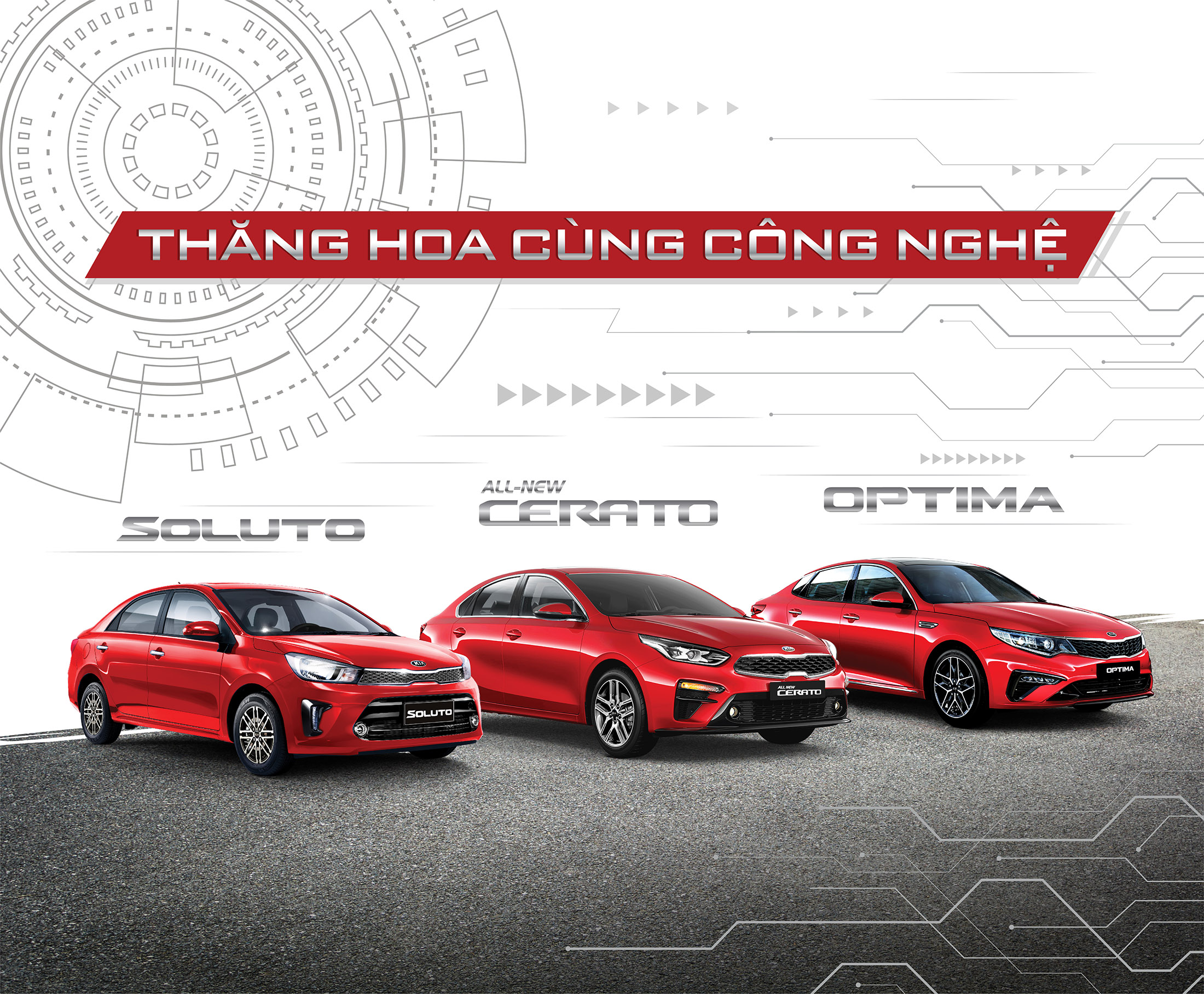 Đóng vai trò quan trọng trong việc định hình phong cách mới của Kia Việt Nam, không chỉ hấp dẫn cuốn hút khách hàng với thiết kế hiện đại và ấn tượng trên 3 sedan Kia: Kia Soluto, Kia Cerato, Kia Optima còn sở hữu những công nghệ hiện đại hơn so với các dòng xe cùng phân khúc,